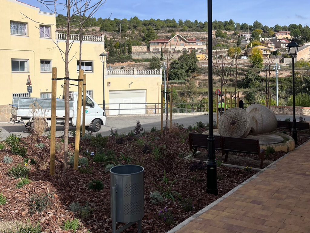 També s’ha realitzat una plantació de nou arbrat i jardineria, amb espècies adaptades al clima mediterrani i un acabat amb escorça per garantir una millor conservació de la humitat i reduir el manteniment. El resultat és un entorn més verd, més agradable i sostenible.